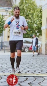 2016-ban névnapjára megkapta a FÉLLÁBÚ KENGURU pólót. És azóta folyamatos a kenguru-edzés, versenyzés. Rendületlenül fut, hóban-fagyban, aszfalton és erdőben. Szereti, nagyon. Vivicittá – FM, Kékes Csúcsfutás, K&H váltó, Suhanj – egyéni, Wizzair – FM, Esztergom – FM, Spar Maraton. Asszonyát, gyermekét is megfertőzte. Mellékhatás. 😀 Felesége első 21kilométerére készül épp, és erre Ő nagyon büszke…