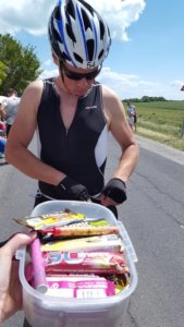 4 körös a pálya, plusz van egy bekötő szakasz. A bekötő szakasznál volt a szurkolói központ. Idén már más útvonalon vezetett az út, a 710-es főút teljességében le volt zárva, itt igazán jó minőségű úton lehetett kerekezni. Kicsit több szint került a kerékpárpályába, de szerencsére a füredi pályát még mindig nem közelíti meg. Az első kör végén már Edit, Szilvi és Józsi vártak, lesték óhajomat, sóhajomat, etettek, itattak, bíztattak. Józsi már túl volt a versenyén, gyorsan gratuláltam is neki, majd indultam a következő körömre. A bringapályán Viktorral bíztattuk egymást, ő tavaly Kenesén lett Ironman, de még a másik bringapályán, így ez neki is új volt. Bolyozni szigorúan tilos triatlonos versenyeken, így a szabályokat betartva, egymás mellett, másfél méternél nagyobb távolságot tartva tudtunk váltani egy-egy szót, bíztattuk egymást, és szidtuk a szelet 😀