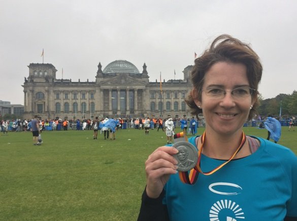 40, 41. Tudom, hogy mindjárt vége, lassan elönt az endorfin, de ami jön, arra nem vagyok felkészülve. Elhagyjuk a 41-es táblát, még egy kicsit futunk tovább egyenesen, de gyanúsan ismerős a környék, befordulunk a sarkon és ott a célegyenes, a Brandeburgi kapu és ez olyan csodálatos és felszabadító érzés, hogy nem tudok nem sírni, vigyorgok, de patakzik a könnyem, a szurkolók tombolnak, de tényleg, és körülöttem látom, hogy mindenki valamilyen katarzist él át, és azt akarom, hogy sose legyen vége, hogy futhassunk még, hogy benne maradhassunk a pillanatban, de közben meg is táltosodunk és loholunk a kapu és a cél felé, és nincs már fájdalom, fáradtság, csak öröm és boldogság.