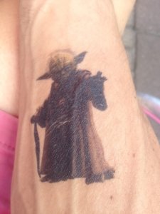 Irány vissza a szállás. Vacsi aztán alvás. Alvás előtt még felraktam a gyerekeimtől kapott motivációs vizes tetkókat. Zalán fiam Yoda mestert, Zsófika egy kedves mondását és Zitike pedig a sapkámat festette ki. Yoda mester a legjobb AGE grouper lehetne 750-800 as korcsoportba. Nagyon érzi az erőt mindig hideg fejjel versenyez. És a hihetetlent is elhiszi ezért képes hihetetlen dolgokra. 😀 Zsófikám egyszer amikor a Tour de Francet néztük, kedvesen megkérdezte: Apa te soha nem adod fel? Gondoltam most közelebb kerülhetek a válaszhoz. Muszáj valahogy becsapni az agyunkat, ha extra teljesítményt akarunk kihozni a testünkből. Bár én úgy gondolom, hogy csak azért kell edzeni, hogy a testünk kibírja azt, amit az agyunk elképzel…